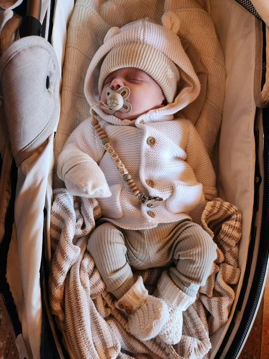 Super fast delivery and such a lovely product, the beads are rubber so it's safe and can double up as a teether when my baby starts teething.